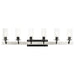 Illuminate your home with a bright design from the Beckett collection. The six light vanity sconce is adorned with rounded corners clear square glass shades, emulates a mid-century modern style made popular in the 50s and 60s. The brushed nickel frame is combined with black accents. Perfect for a contemporary or transitional luxury bathroom setting.