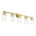 Illuminate your home with a bright design from the Whittier collection. This large five-light vanity sconce features a polished brass finish with clear glass. Perfect for a contemporary or transitional luxury bathroom setting.