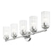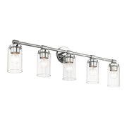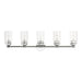 Illuminate your home with a bright design from the Whittier collection. This large five-light vanity sconce features a polished chrome finish with clear glass. Perfect for a contemporary or transitional luxury bathroom setting.