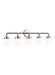 The Cafe five light vanity fixture in brushed nickel provides abundant light for your bath vanity, while adding a layer of today's style to your interior design.  Handsome two-tone finish and white glass globe shades.