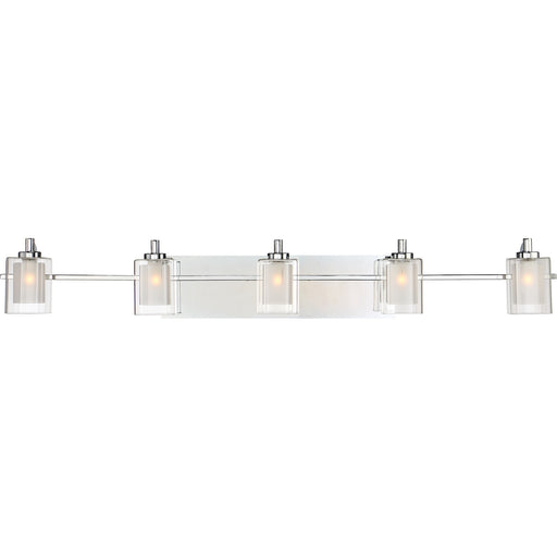 This chrome finish five-light vanity light energizes a contemporary bath space. Take advantage of a tasteful Art Deco inspired silhouette and the b...