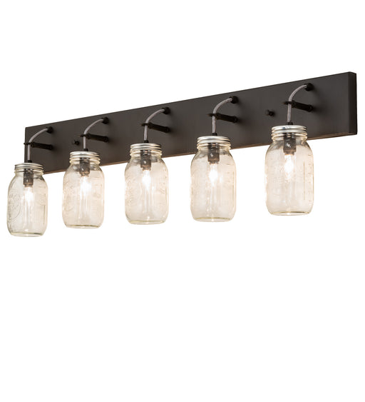 Designed to add quaint charm and fun to your home or business. This vanity light features five Clear Glass Mason Jars with Oil Rubbed Bronze finish...