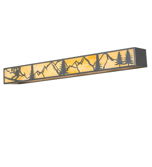 Wandering among the wilderness lakeside, the majestic Moose with antlers stands tall as he adorns this luminaire, which features a long linear Ambe...