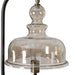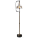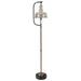 This Floor Lamp Features A Delicate Design Finished In A Plated Antiqued Brushed Brass And Rusted Aged Black, Featuring A Gracefully Curved Light Amber Glass Shade.