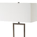 This Floor Lamp Features A Unique Split Iron Column Finished In A Warm Dark Bronze, Displayed On A Substantial Block Of Beige Travertine. The Rectangle Drum Shade Is Covered In A Causal White Linen Fabric.