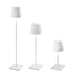 Battery-operated, rechargeable, and height adjustable portable floor and/or table lamp. The lamp features dimming touch control and has 2-CCT color temperature selection for 2700K (warm white) or 3000K (cool white). The integrated LED module is designed and engineered to produce controlled downlight and a gentle uplight glow. The center column consists of 3 stems to allow the height to be adjusted from a minimum 27.3 inches to 59 inches. The integrated LED module produces controlled down light. Features LED light with polycarbonate diffuser Touch-dimming 15 hours cordless illumination Charging time approximately 20 hours Indoor/outdoor use (powder-coated finishes) Rechargeable battery Contact charging base included Specifications 6.5W LED, 470 - 500 lm 2700/3000K CRI>,80 100-240 11" sq. base Adjustable height: 27.3" / 43.3" / 59" IP54 rating protection Die-cast aluminum body Powder-coated finish Weight 15 lbs. Instructions To recharge your Poldina Pro XXL lamp, plug the provided charging base into an outlet and place the lamp on the base. The translucent On-Off switch located below the shade will glow red while charging and turn green once the charging cycle is complete. A full charge takes around 10 hours. The fully charged lamp may remain on the charging cradle without damaging the battery.
