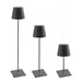 Battery-operated, rechargeable, and height adjustable portable floor and/or table lamp. The lamp features dimming touch control and has 2-CCT color temperature selection for 2700K (warm white) or 3000K (cool white). The integrated LED module is designed and engineered to produce controlled downlight and a gentle uplight glow. The center column consists of 3 stems to allow the height to be adjusted from a minimum 27.3 inches to 59 inches. The integrated LED module produces controlled down light. Features LED light with polycarbonate diffuser Touch-dimming 15 hours cordless illumination Charging time approximately 20 hours Indoor/outdoor use (powder-coated finishes) Rechargeable battery Contact charging base included Specifications 6.5W LED, 470 - 500 lm 2700/3000K CRI>,80 100-240 11" sq. base Adjustable height: 27.3" / 43.3" / 59" IP54 rating protection Die-cast aluminum body Powder-coated finish Weight 15 lbs. Instructions To recharge your Poldina Pro XXL lamp, plug the provided charging base into an outlet and place the lamp on the base. The translucent On-Off switch located below the shade will glow red while charging and turn green once the charging cycle is complete. A full charge takes around 10 hours. The fully charged lamp may remain on the charging cradle without damaging the battery.