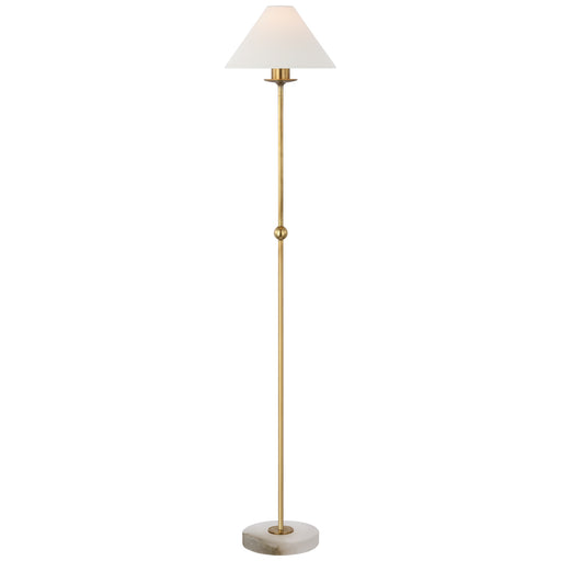 Moresby Floor Lamp in Hand-Rubbed Antique Brass with White ShadeDetails:Product Type: Floor LampsFinish: Plaster WhiteShade: WhiteDesigner: AERINMe...