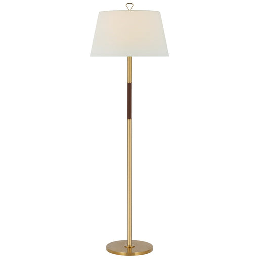 Details:Product Type: Floor LampsFinish: Hand-Rubbed Antique Brass and Saddle LeatherShade: 15" x 19.5" x 11" LinenDesigner: Amber LewisMeasurement...