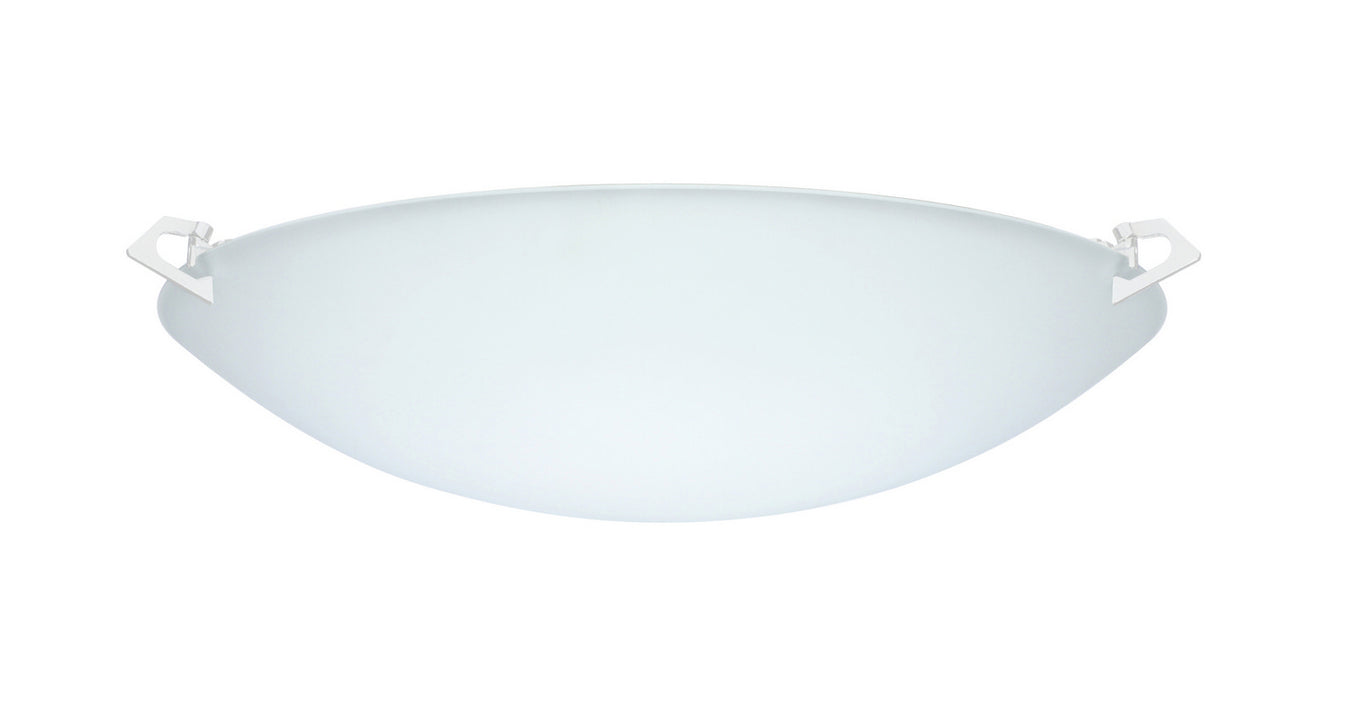 Sonyaââ¬â¢s Satin Frost glass is suspended near the ceiling by three decorative twist-lock clips. Our Frost glass is clear pressed glass that ha...