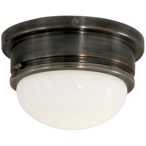 Marine Medium Flush Mount in Bronze with White GlassDetails:Product Type: Bowl StyleFinish: BronzeShade: White GlassDesigner: Chapman & MyersMe...