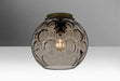 The Bombay Ceiling is composed of a smoke glass globe, with an interesting circular optical pattern blown throughout the interior of the glass. The dramatic play of light through the accents and onto adjacent surfaces make for a striking affect, along with the modest display of the lamp filament behind the glass. These stylish and functional luminaries are offered in a beautiful Bronze finish.
