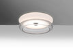 The low-profile Topper 8 flush mount uses a multi-layered glass design, with two toroidal ring sections fused together onto a flat white glass. The top portion is opal glossy glass with a contemporary polished finish, while the bottom is composed of a clear blown glass ring. The tranquil glow has a low key harmonious display that exudes a warm mood…vitalizing as well as stylish.