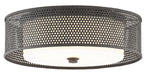 Our Notte Flush Mount is made of wrought iron in a Mole black finish. The shade, which has been punched, will create patterns on surrounding surfaces when the lights are on. The acrylic white diffuser on this black flush mount is held into place by a simple finial, also of wrought iron in a Mole black finish.