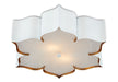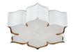 The Grand Lotus White Flush Mount receives its good looks from a combination of stunning workmanship and a mix of sugar white and contemporary gold leaf finishes. The white chandelier is skillfully fashioned from wrought iron.