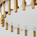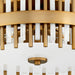 Alternating rods of steel and alabaster-style resin encircle candelabra sockets in the Cassio series of mid-century, empire styled lighting. A frosted glass diffuser expertly distributes light for a soft, warm glow. Aged brass finished steel paired with whisps of white in the resin rods creates a timeless facade that boosts any interior design project. Available in pendant or flush mount options.