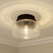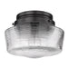 Suited for classic and transitional interiors, Holloway is a schoolhouse fixture with a vintage-inspired aesthetic. The texture of the glass contrasts The smoothness of the Matte Black finish. Horizontal lines in the glass mimic a pattern seen on retro décor and draw the eye while gently diffusing light. Elevate the look of your home with this charming flush mount. Damp-rated with a Low-profile design that allows for more overhead space, Holloway is perfect for hallways and bathrooms.