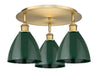 Plymouth - 3 Light - 19 inch - Brushed Brass - Green Shade - Flush Mount