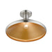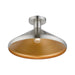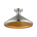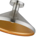Featuring a clean and crisp modern look, the Geneva 1-light flush mount makes a contemporary statement with the smooth cone shape of its brushed nickel finish exterior. A gleaming gold finish on the interior of the metal shade brings a refined touch of style.