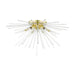 The Utopia six light flush mount fixture will become an attention-grabbing feature in your modern home decor. The satin brass finish graces the design with elegance and charm, providing a timeless and glamorous quality to any interior. The clear crystal rods give the pendant chandelier a sleek and attractive appearance.