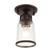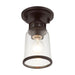 Reminiscent of turn of the 19th century lighting, the Lawrenceville collection highlights a retro industrial design featuring clear seeded glass and a bronze finish. This single light flush mount fixture easily fits into industrial, transitional and modern classic kitchens, hallways or bathrooms.