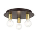 Livex Lighting 45873-07 Three Light Flush Mount, Bronze w/ Satin Brasss