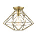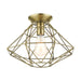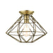 The Geometric collection showcases an angular frame set in a contemporary ambiance for a perfect accenting look. This single light flush mount is easy to install and it`s great solo over a hallway, bathroom or small bedroom setting. The design is a wonderful way to show off your modern style with ease. It is shown in an antique brass finish.