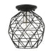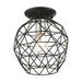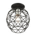 The Geometrix collection adds a stylish touch of contemporary inspiration featuring a classic geometric cage design. This single-light flush mount, shown in a black finish with brushed nickel finish accents, will fit comfortably almost into any room décor. With superb craftsmanship and affordable price, this fixture is sure to tastefully enhance your lifestyle.
