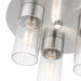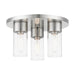 The Carson transitional three light flush mount will bring posh sophistication to your decor. The clear cylinder glass combined with the brushed nickel finish gives this piece a sleek, contemporary look.