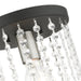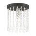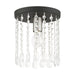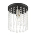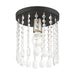 Decorative finishes complete the beautiful Elizabeth series with a refined quality. Clear crystal frills offer detailed elegance to the design of this single-light flush mount. Attract attention with the bold personality provided by this lovely fixture which is perfect for your kitchen, hallway, bathroom or as an accent light in the bedroom. It is shown in a black finish with brushed nickel finish accents.
