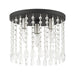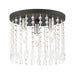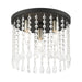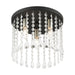 Decorative finishes complete the beautiful Elizabeth series with a refined quality. Clear crystal frills offer detailed elegance to the design of this three-light flush mount. Attract attention with the bold personality provided by this lovely fixture which is perfect for your living room, dining room, kitchen, hallway, bathroom or bedroom. It is shown in a black finish with brushed nickel finish accents