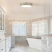 Light up any space in glamorous style with this 20 inch round antique silver flush mount. This sophisticated 4 light ceiling fixture, features a cylindrical hand painted frame that uses texture to create the decorated pattern that is used in our trellis collection. Complete with a frosted glass diffusor to spread the light evenly around the space, and a beautifully sculpted finial to add that finishing touch.