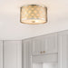 The beautifully designed Arabella series has a distressed gold metal outer shade with a cream linen fabric shade and glass diffuser to soften the light. This ceiling flush mount has a diameter of 16" and a height of 8" . Two Medium 75 watt bulbs inside provides the perfect ambiance for any room.