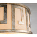 Our Flambeau inspired ceiling flush mount fixture is designed with a classic Greek key shaped metal outer drum and ivory linen inner shade creating a striking focal point for your hallway, closet, bathroom or kitchen installation. In the latest neutral tones of silver and cream, this ceiling fixture is the perfect addition to finish your simple and updated space, and accent the Stately design that is a favorite in today's trends. We finished this flushed ceiling fixture with a white acrylic diffuser for soft lighting without the glare. Our medium 15 inch diameter Lemuria flush mount is shipped and packaged with extra care to arrive undamaged and ready for installation.