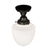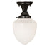 Restore the past with this always fashionable early electric reproduction Revival ceiling fixture. The fixture features a White Schoolhouse Glass shade and is complemented with hardware in a Craftsman Brown finish. This vintage lighting design features a refined yet consistent distinctive style that originated in traditional schoolhouses and public buildings in the early 1920s. Inspired by schoolhouses from Wells, Maine, and Columbia County, New York, to Waverly and Canaan, Pennsylvania, and Mason County, West Virginia, to Cedar Falls, Iowa, and Lawson, Missouri. The Revival Schoolhouse Semi-Flushmount is included in our American-designed, handcrafted Schoolhouse Lighting Collection. UL and cUL listed for dry and damp locations.
