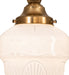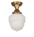 Restore the past with this always fashionable early electric reproduction Rochelle ceiling fixture. The handsome semi flushmount fixture is crafted from Brass and finished in Satin Brass Patina. This floral and scalloped patterned White Opal Glass shade enhances this fixture. The Revival Schoolhouse Rochelle Shade is included in our American-designed, handcrafted Schoolhouse Lighting Collection. UL & cUL listed for dry and damp locations.