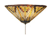 Warm earth toned Bone Beige and Moccasin Tan stained glass, accented with glistening Root Brown and Sage Green, is used to make this intricate interlocking patterned shade. Mission style hardware in a hand applied Mahogany Bronze finish supports the handsome round cone shade inspired by historic American artwork. Handcrafted with the copper foil technique developed by Louis Comfort Tiffany, this flush mount fixture is a true masterpiece.