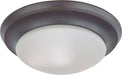 Satco's 1 light, 12 inch twist and lock flush mount features a deep rich mahogany bronze finish, accented by frosted white glass. Illuminate living rooms, foyers, or any room in the home that could use extra lighting with this easy to install flush mount fixture. Stylish and elegant, impress your guests with this sophisticated flush mount fixture.