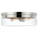 The blend of styles (modern, industrial and chic) is incorporated beautifully into the design of the Intersection large flush mount. The clear glass shade showcases vintage filament bulbs for a touch of nostalgia. The sleek, mirror-like, polished nickel will pair superbly with existing finishes. Apply to a hallway, mudroom, or in an entryway, the Intersection is a stylish addition to any room.