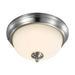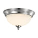 Satco's 19-watt, 11 inch flush mount fixture is a clean and traditional lighting solution for the home. The brushed nickel finish and frosted glass are in keeping with the versatile, yet stylish design. Ideal for lighting areas with low ceilings or for new construction, this elegant flush mount delivers 50,000 hours of warm white light.