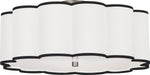 Blackened Antique Nickel Finish Axis Flushmount With Scalloped Ascot White Fabric Shade with Black Contrasting Trim - Axis features a scalloped design that diffuses the light in a most inviting way and also adds an elegant touch that is subtle and charming.