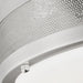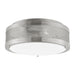 The Vander three light flush mount fixture in brushed nickel silver Vander is a loft-style flush mount featuring a perforated metal exterior banded an opal etched diffuser. Use it in a mudroom or laundry room for unfettered, functional light.