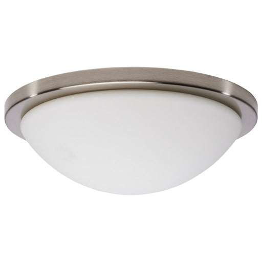 Nuvo's 25-watt, 14 inch flush mount twist and lock fixture features a brushed nickel finish with frosted glass. Damp rated, this fixture is ideal f...
