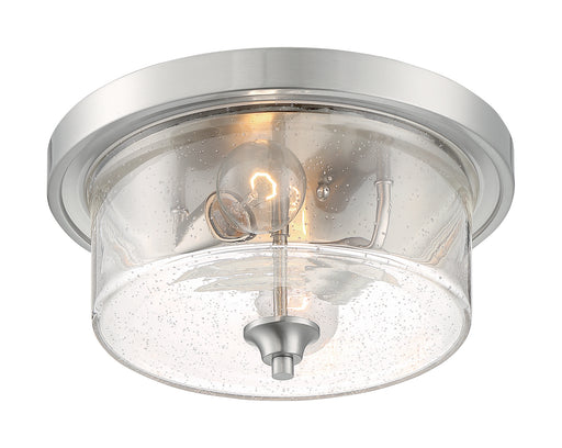 The seeded glass shade enclosure accents the Brushed Nickel finish on the Bransel two-light flush mounted light. The sleek, streamlined appearance ...