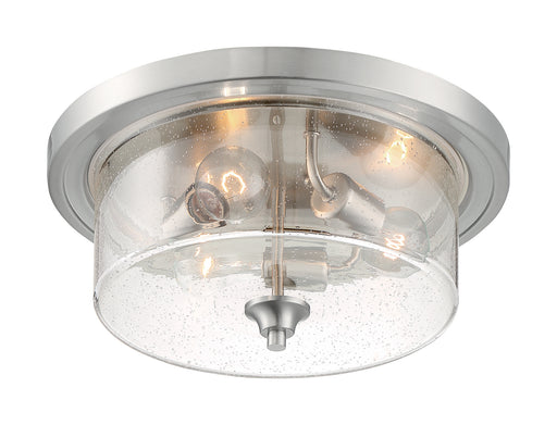 The seeded glass shade enclosure accents the Brushed Nickel finish on the Bransel 60-7191 three-light flush mounted light. The sleek, streamlined a...