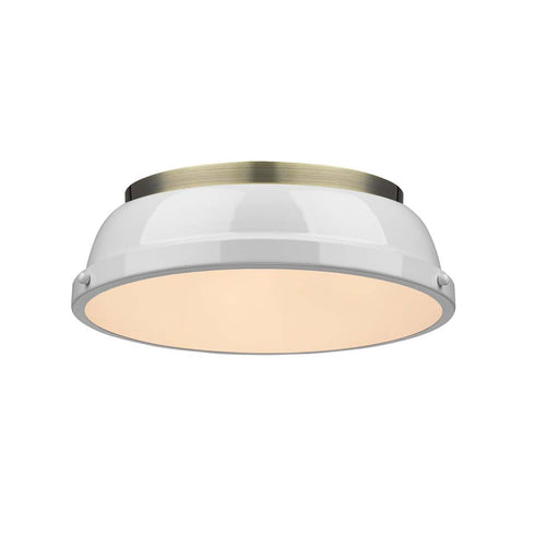 View full detailsGolden 3602-14 AB-WH Two Light Flush Mount, Aged Brass