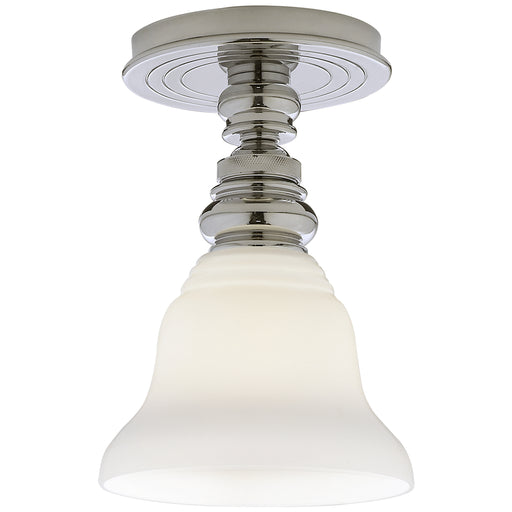Boston Single Flush Mount in Polished Nickel with SLEG ShadeDetails:Product Type: Exposed LampsFinish: Polished NickelShade: White Glass Desk Shade...