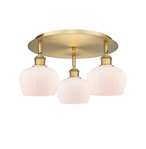 Fenton - 3 Light - 18 inch - Brushed Brass - Matte White Shade - Flush MountDetails:Product Type: Multi-Port/ClusterFinish: Brushed BrassShade: Mat...