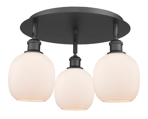 Ellery - 3 Light - 17 inch - Matte Black - White Shade - Flush MountDetails:Product Type: Multi-Port/ClusterFinish: Matte BlackShade: White ElleryR...