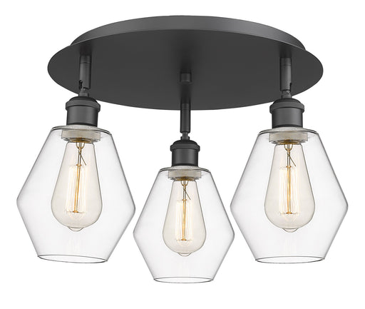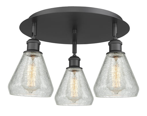 Conesus - 3 Light - 18 inch - Matte Black - Clear Crackle Shade - Flush MountDetails:Product Type: Multi-Port/ClusterFinish: Matte BlackShade: Clea...